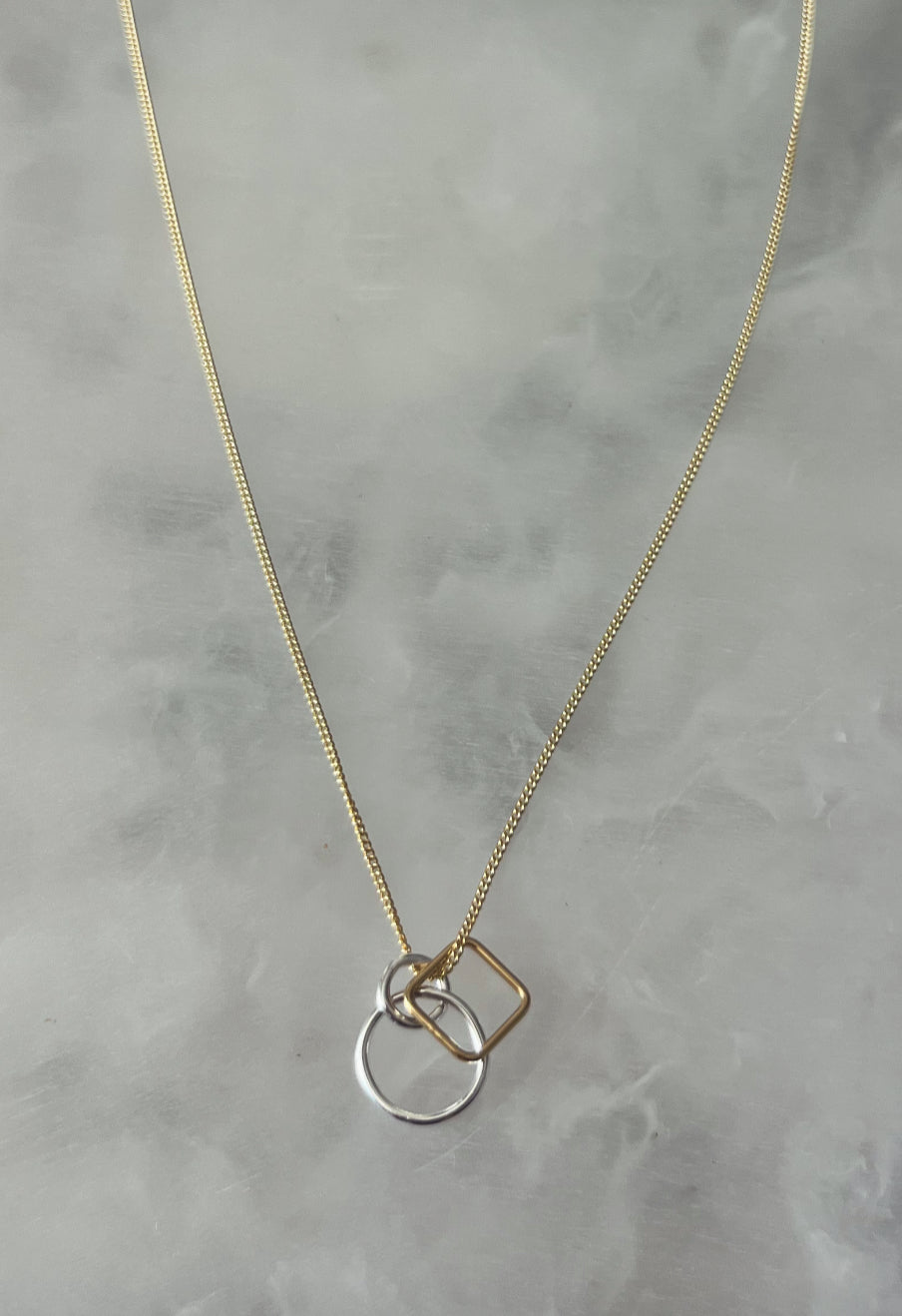 Gold chain with circles and square