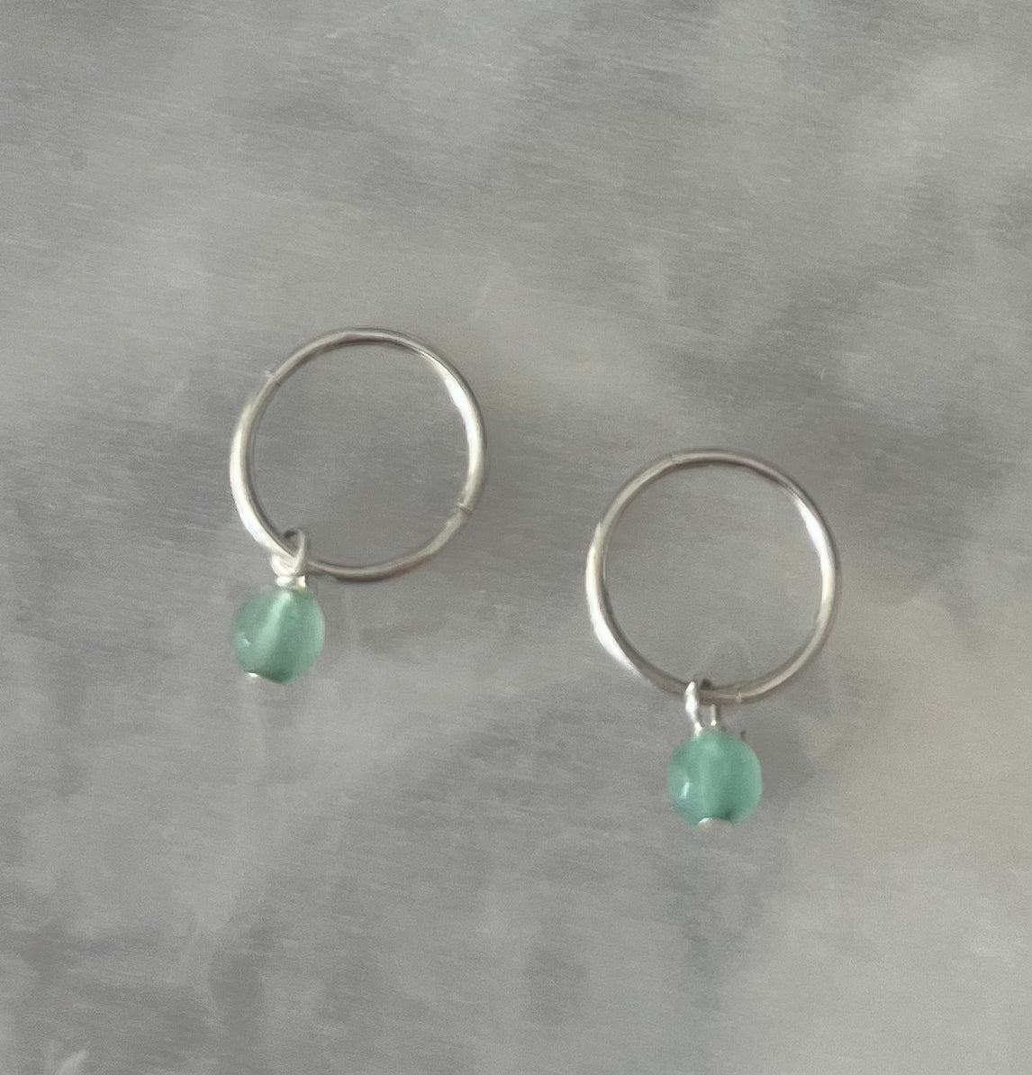 Silver Sleepers With Green Gemstone